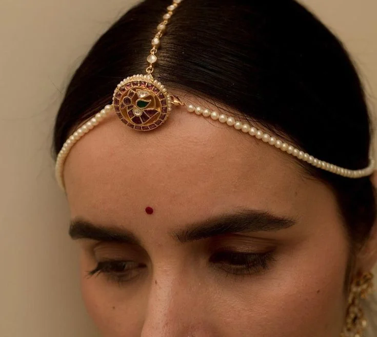 A well-crafted mangtika set adds symmetry to your facial structure and brightens your forehead, making your features appear sharper and more defined.